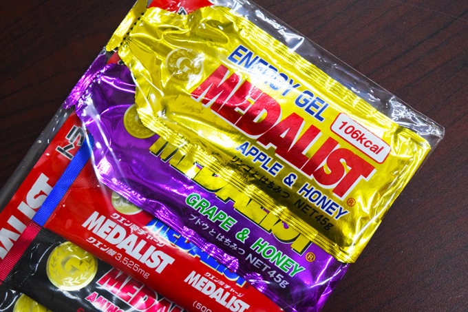 そしてもう一つギリギリまで判断をつけていなかったのが補給。ザバスの完走セットにしようかと思いましたが、最終的にはメダリストのENERGY GELを3つとスポーツようかんを一つ、ポーチに入れてスタートしました。チョイスの理由としては、ザバスのPIT INよりメダリストのENERGY GELの方がおいしいから(SHO1比)。それと、キャップが無くてより平らにポーチの中に収納できるからです。スポーツようかんは、単純に好きだからです(笑)。ということで自前では4回の補給だったわけですが、正直足りませんでした。個人的にはもう2つくらいあっても良かったなと思いました。20kmを過ぎてから距離を目安にしつつ足が止まっているなと感じたタイミングで摂りましたが、いかんせん30km過ぎてからは止まりっぱなしだったので(笑)、荷物になりすぎないバランスを見ながら多めに持った方が良いと感じました。
